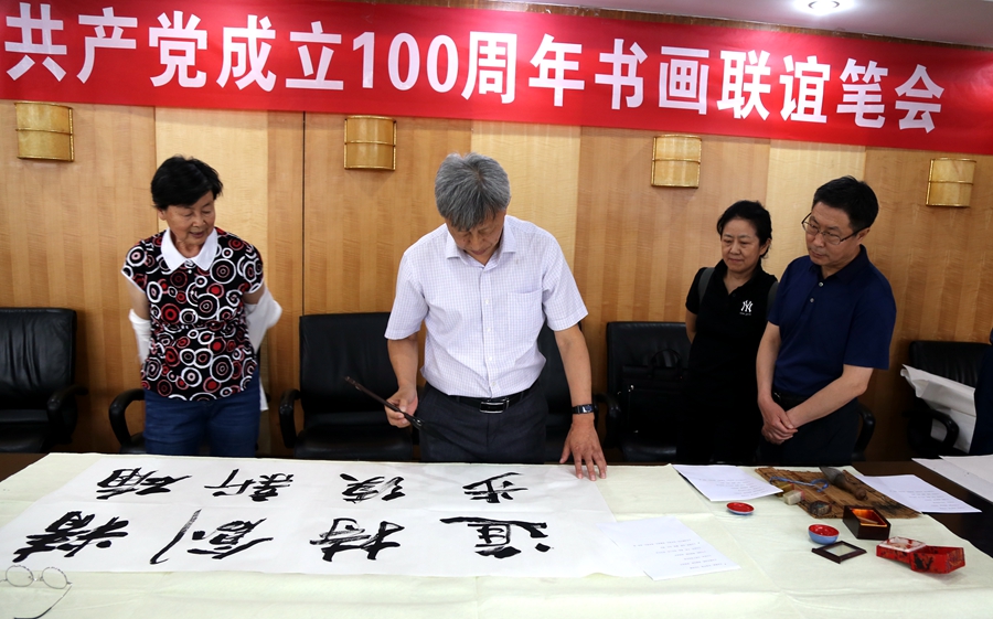 为庆祝中国共产党成立100周年,回顾党的奋斗历程,歌颂美好新时代,助力公司企业文化建设。6月24日,山东宁森环保科技有限公司、烟台市老年书画研究会、烟台市老干部志愿者协会共同举办“庆祝中国共产党成立100周年联谊书画笔会”。本次活动共有18位县处级退休老干部书画家参加。