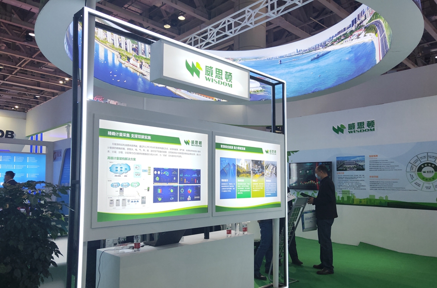 本次展会我公司以“创新拥抱能源 携手低碳时代”为主题,分产品、成果、实物三个区域展示公司在低碳、零碳领域的重要成果。产品展示区主要展示山东宁森环保科技有限公司绿色生态城市、国内首个零碳智慧园区、数字化智能工厂、清洁供用能服务等方面的系列产品。实物展示区展示了能源控制设备、节能控制设备、智能采集终端、电能质量管理设备、充电桩等节能产品。成果展示区以3D和视频方式展示了山东宁森环保科技有限公司国家重点研发计划“工业园区多元用户互动的配用电系统关键技术研究与示范项目”。以该项目为支撑,山东宁森环保科技有限公司自主创新研发的E2800综合能源管理系统关键技术处于“国际领先”水平,成为高耗能企业的“减碳利器”。